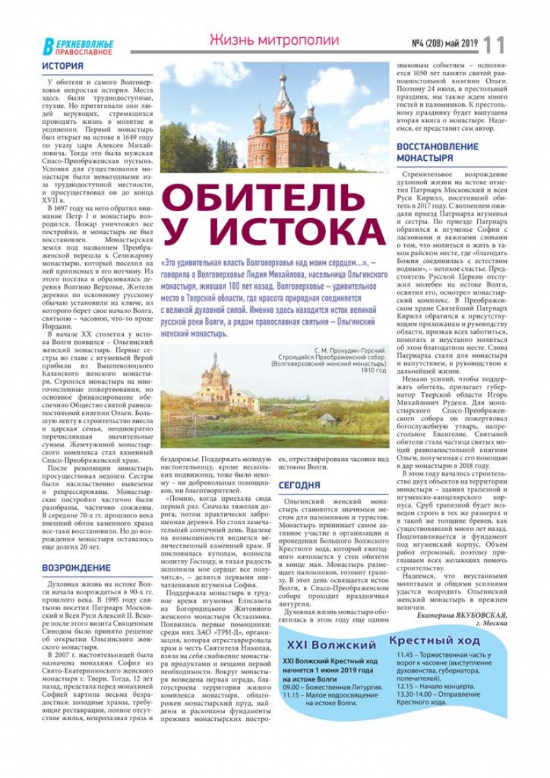 В газете "Верхневолжье православное" вышла статья об Ольгинском монастыре
